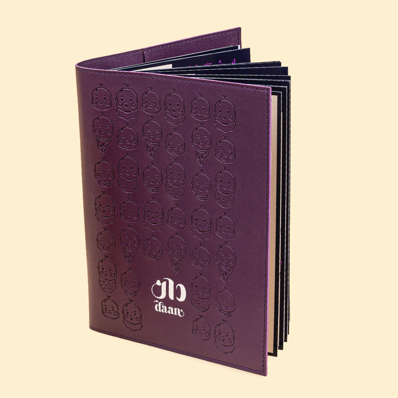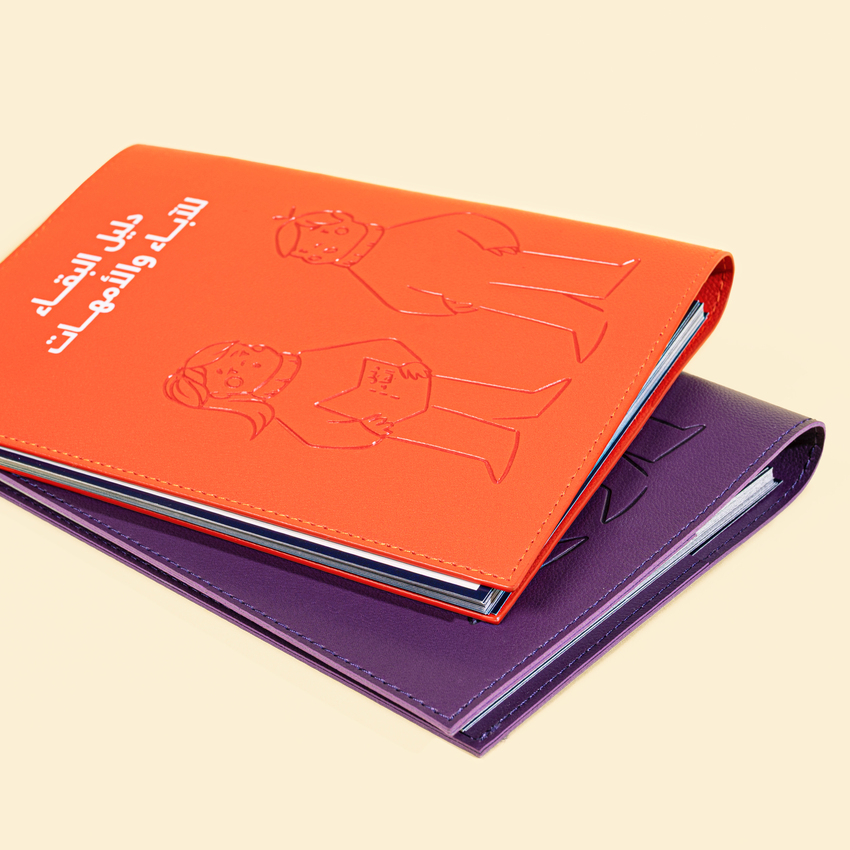 تصميم الكتاب فخم مع غلاف جلدي أنيق وقوي، عملي ويناسب جو العائلة.